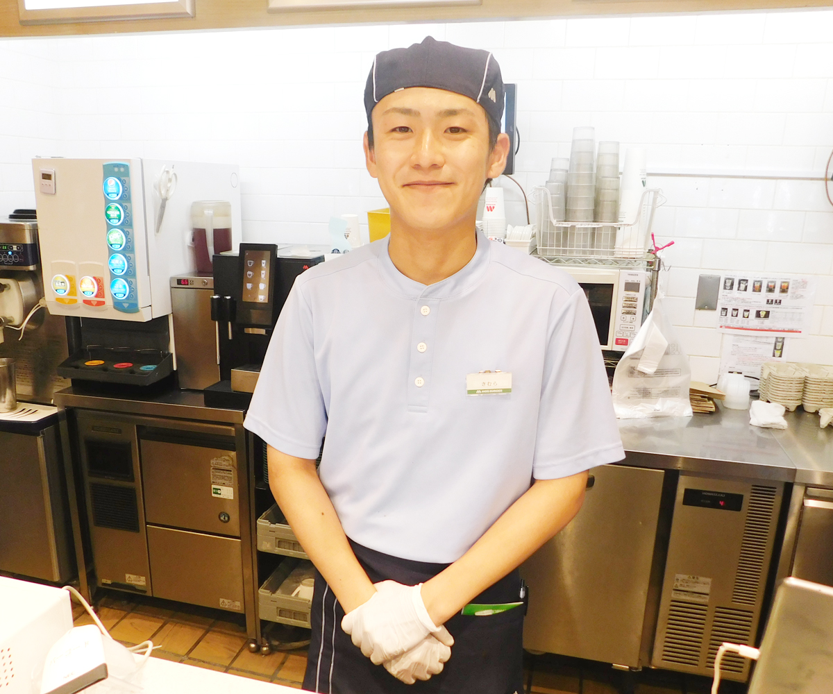 元々接客業が好きで、学生時代はモスバーガーでアルバイトをしていました。「モスバーガーが好き」「モスで働く人の雰囲気が好き」という思いから、“ここで頑張りたい”と入社を決めたんです。自分にとって、仕事をする上で一緒に働く人はとても重要なのですが、皆さんとても優しくて親切で……。まだ入社して日が浅くはありますが、“人のよさ”を、身に染みて実感できています。