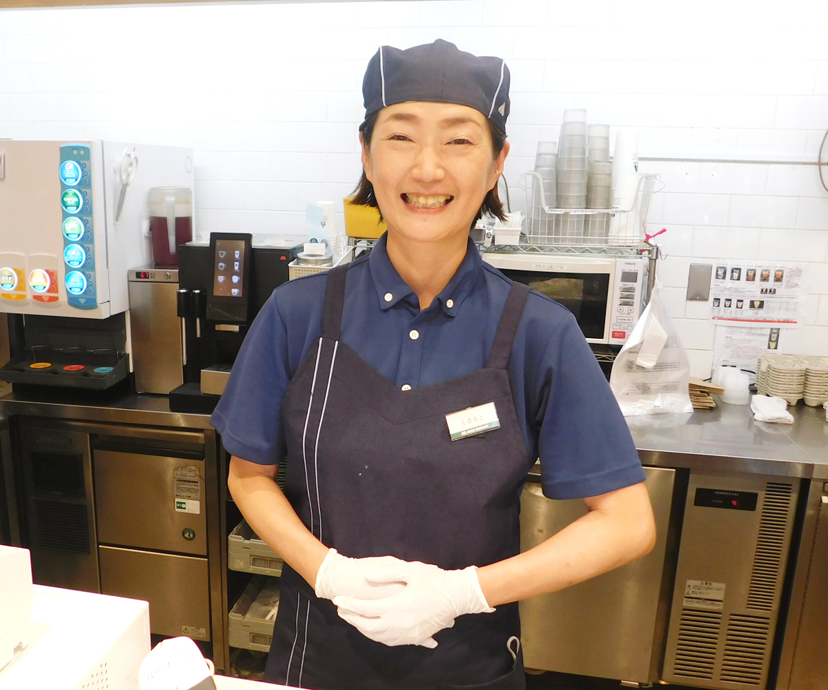 お客様に対しても、一緒に働くスタッフに対しても、丁寧に接するようにしています。お客様に対して大切にしているのは、まずは、自分が明るく笑顔で対応すること。常連さんにも多くご来店いただくので、「自分が店舗の雰囲気づくりに貢献している」という自覚を持って日々の業務にあたっています。スタッフに対して大切にしていることは、思いやりの気持ちです。勤続年数が長いので、指導する立場となることも多いのですが、誰に対しても「失敗しても良いから、前を向いて、はっきりと声を出そう!」と伝えています。言い方1つで与える印象が大きく変わってしまうと思うので、柔らかく伝えることも大切にしていますね。学生さんとは、自分の過去の経験をもとに就活の話をしたり、主婦さんとは子育てや家事の話をしたり…など、どのスタッフと話すのも楽しいので、毎日充実しています。